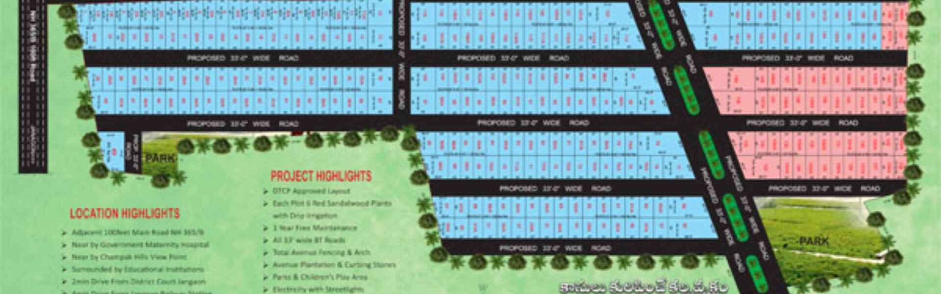 Champak Hills is a DTCP Approved venture located at Jangaon , Jangaon Highway facing between Bhongiri-Warangal. Adjacent 100feet Main Road NH 365/B.