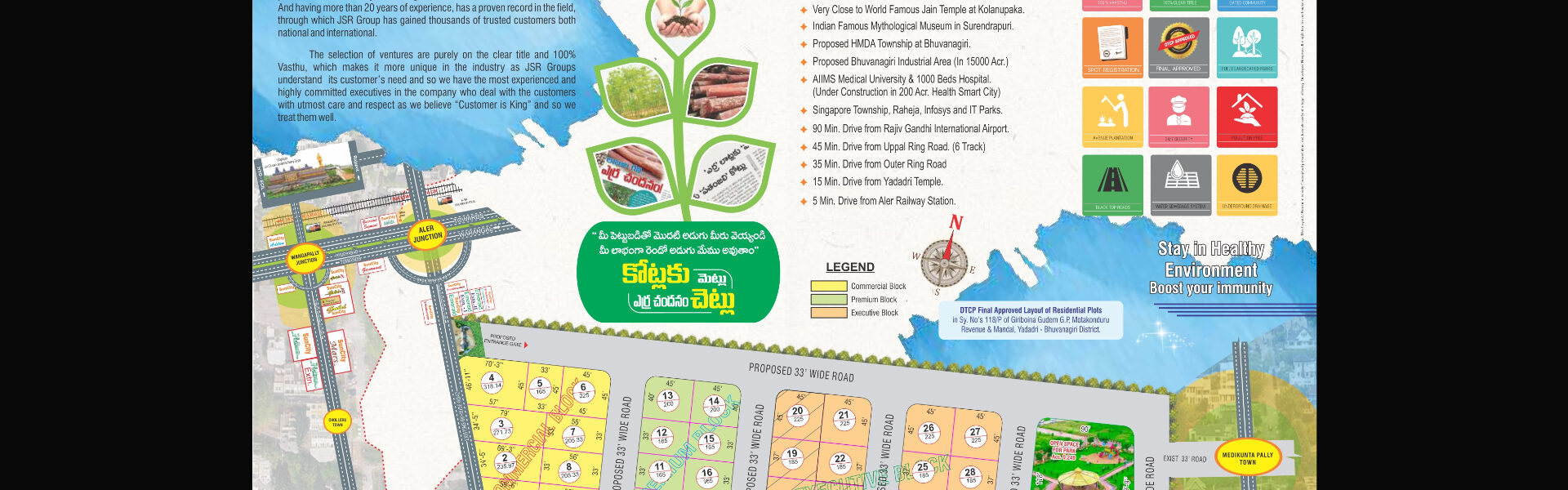 JSR Group SunCity proudly presents Mars Extensio, an exceptional and eco-friendly gated community that offers premium villa plots for sale. This venture is situated in Marrigudem, a neighbourhood of Yadagirigutta, and has received DTCP and RERA approvals, ensuring reliability and authenticity.