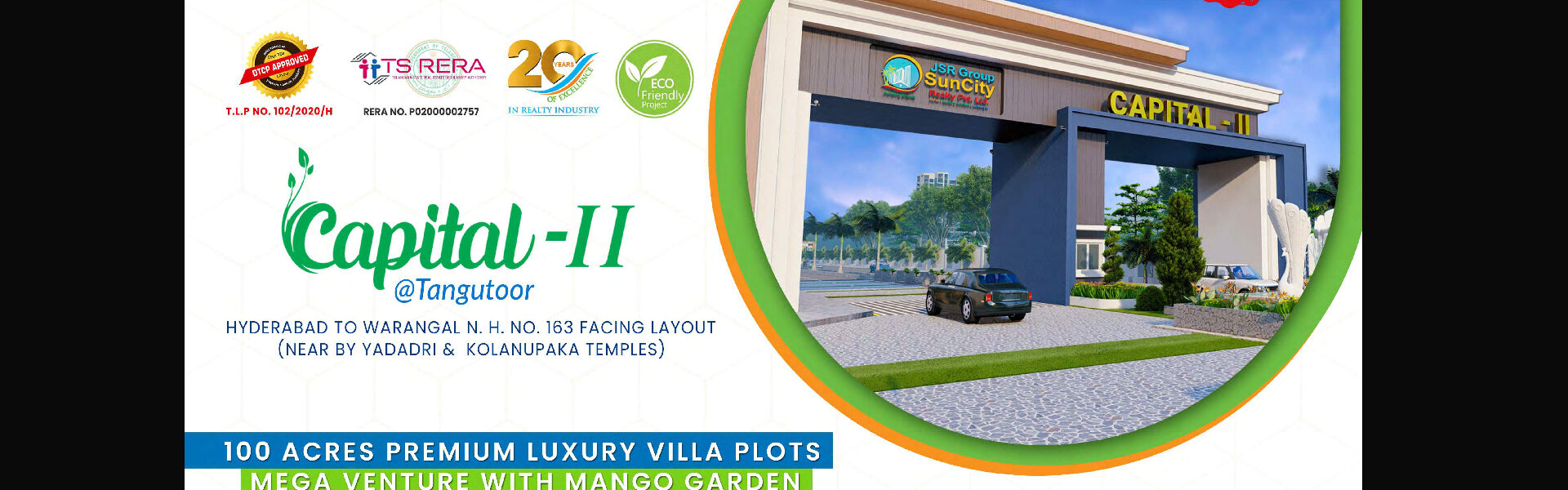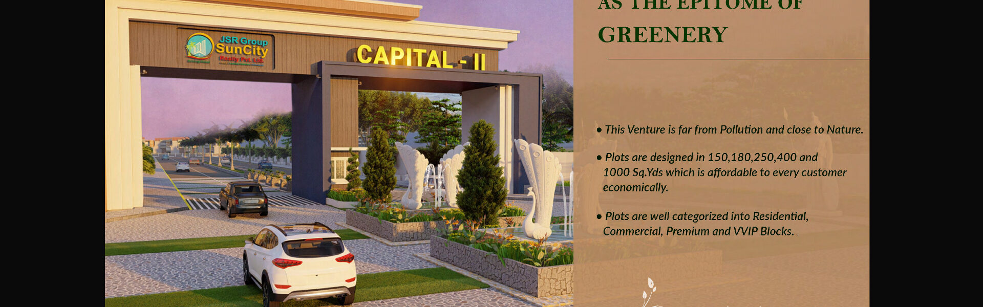 JSR Group Sun City presents yet another Amazing and Pleasant Venture CAPITAL-II. Eco-friendly and Premium Villa Plots -A Mega Venture Unveiled.