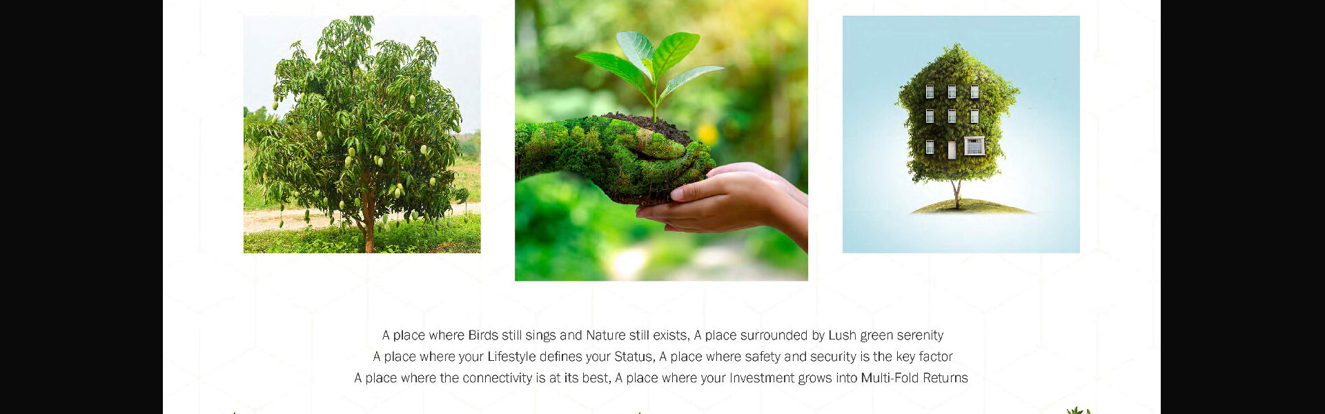 Surrounded by Mango and Coconut Trees, this venture is very close to mother nature and is completely pollution free. Being a gated community, the venture is entirely secure and safe with 24/7 security and a strong compound wall with a magnificent entrance.