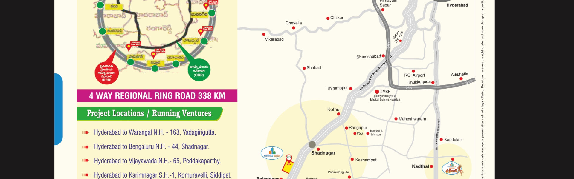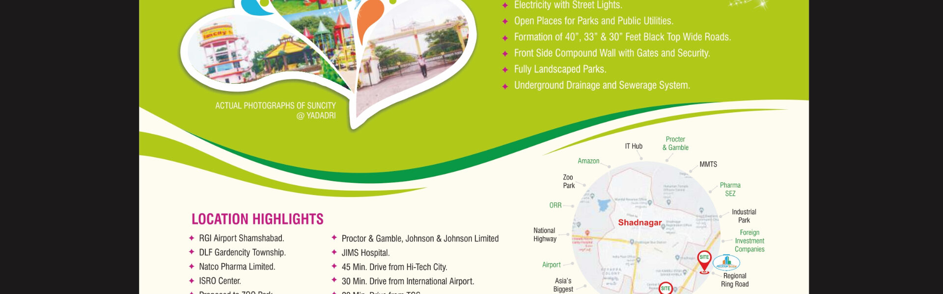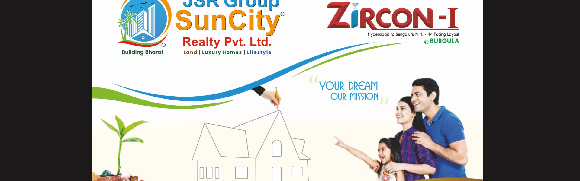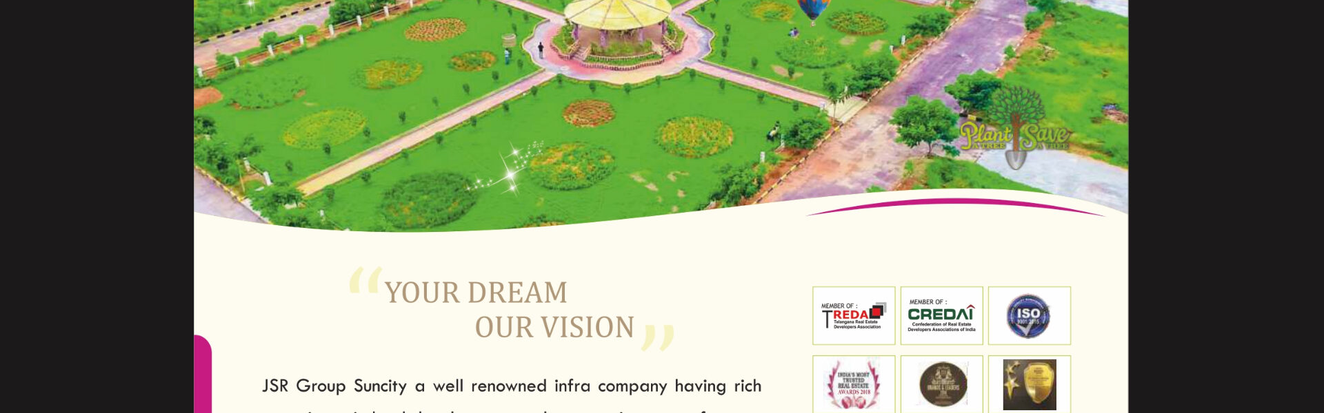 JSR Group SunCity is the most accomplished and trusted real estate company, offering HUDA/HMDA/DTCP approved layout for both residential and commercial plots near Shamshabad, Hyderabad, Wangapally and Yadagirigutta.