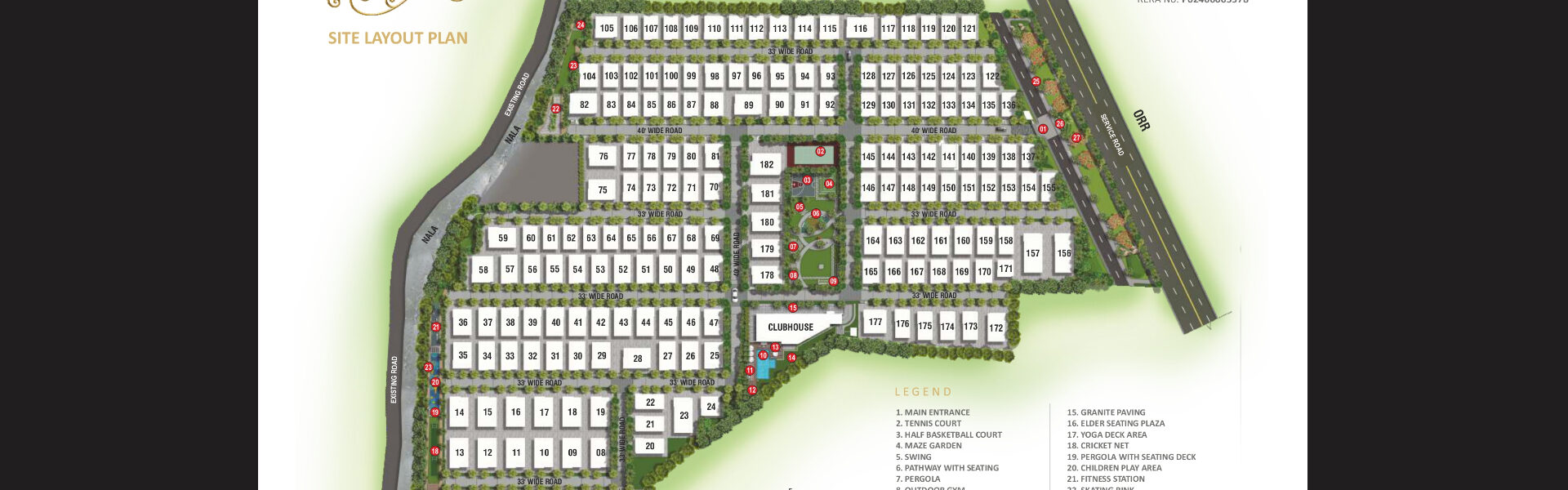 HMDA & RERA Approved Projects 22 Acre Luxury Gated Villa Community All round 6' high compound wall Majestic entrance gate 182 Premium Triplex villas 4054 Sft - 8564 Sft areas East, West & North facing villas Multi-purpose hall/ Home theatre in each villa 100% vastu compliant Internet & DTH TV Provision DG power backup Underground electric cabling Underground Drainage Rainwater harvesting Sewage treatment plant App facility for security 24 hr Professional security with CC cameras Pneumatic system for 24hr treated water supply