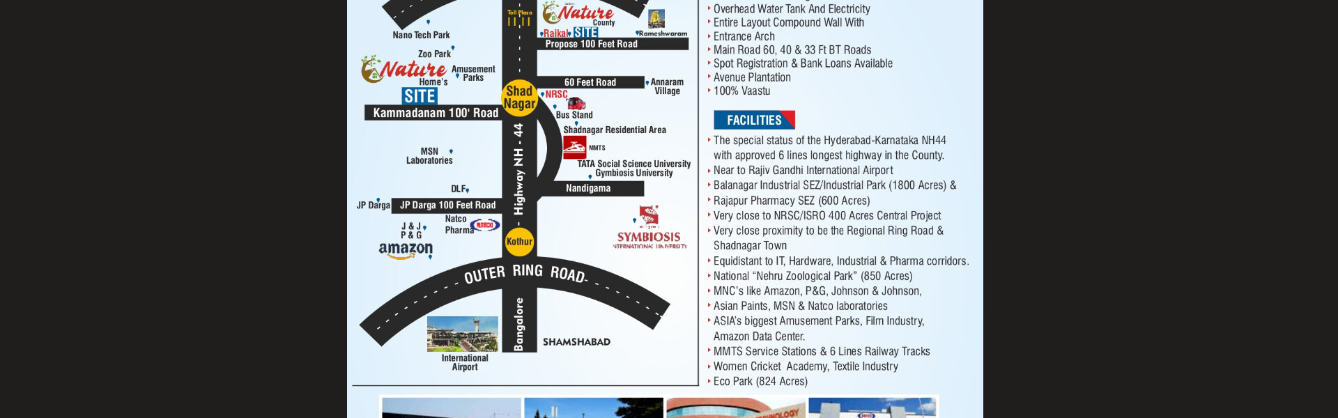 After many transformations from Panchayat to a Municipality, providing civic amenities & services to the citizens. Shadnagar has seen a steady Development & Growth both Geographically & Economically. In terms of real estate, it is emerging as a hub for big names in the construction and property business of commercial and residential segments making it a great spot for land investment. Sunrise’s Nature Homes caters to all impeccable construction and infrastructural facilities with extraordinary housing benefits which help us to buy Residential land in Shadnagar, Hyderabad at the best possible price. L.P No: 162/2021/H